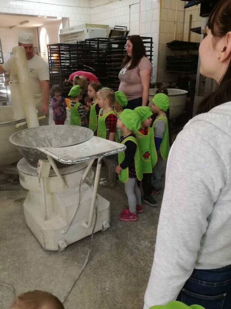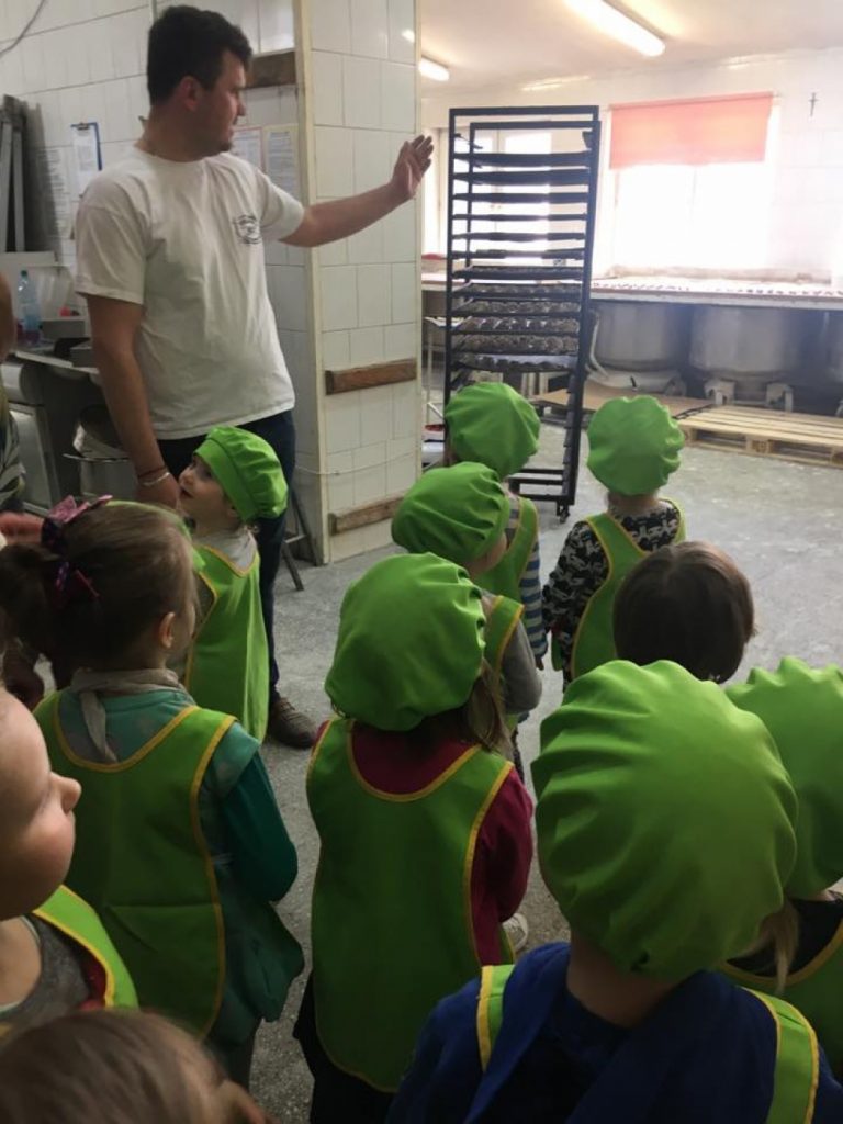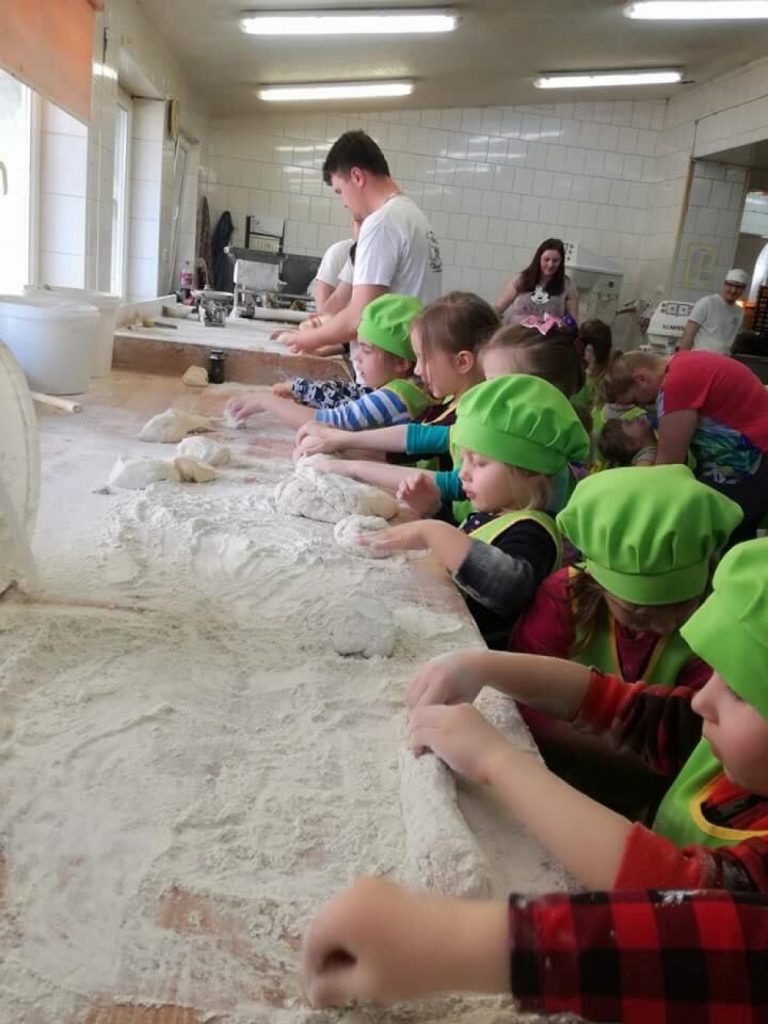 Wizyta w piekarni to kolejna atrakcja, jaką przygotowaliśmy naszym przedszkolakom w tym roku. Dzięki uprzejmości Piekarni „Młyn” i rodzicom naszej Lenki, dzieciaki miały możliwość poznać sposób powstawania chleba, a także mogły samodzielnie go przygotować. Powstały przepyszne bułeczki, chlebki, chałki i rogaliki. To była bardzo fascynująca i edukacyjna wycieczka.