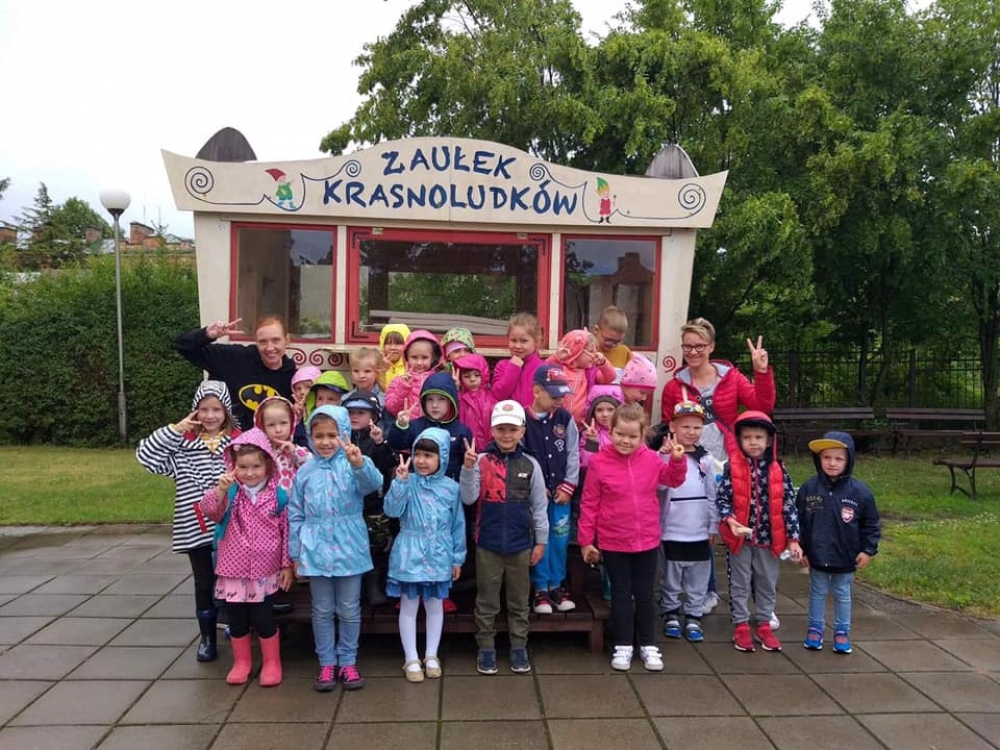 Zaułek Krasnoludków to kolejny punkt na wycieczkowej mapie podróżniczej naszych przedszkolaków. Dzieci miały możliwość zapoznać się z twórczością Marii Konopnickiej, wysłuchać fragmentu jej najsłynniejszego dzieła „O krasnoludkach i Sierotce Marysi” oraz wzięły udział w tematycznych zabawach.