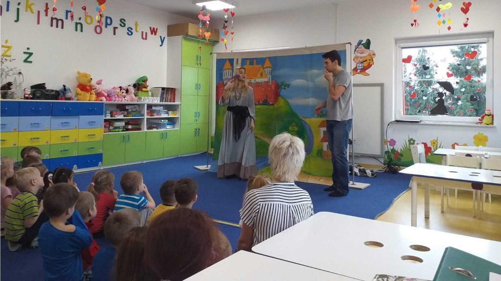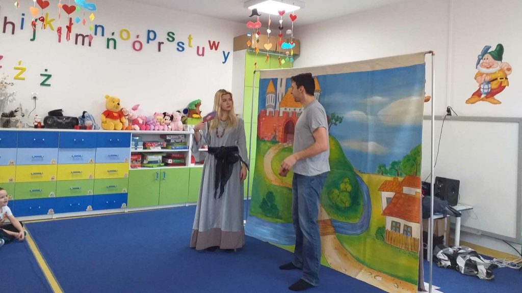 Przedstawienie ,,O dzielnym rycerzu i księżniczce” w wykonaniu Teatru Duet z Krakowa